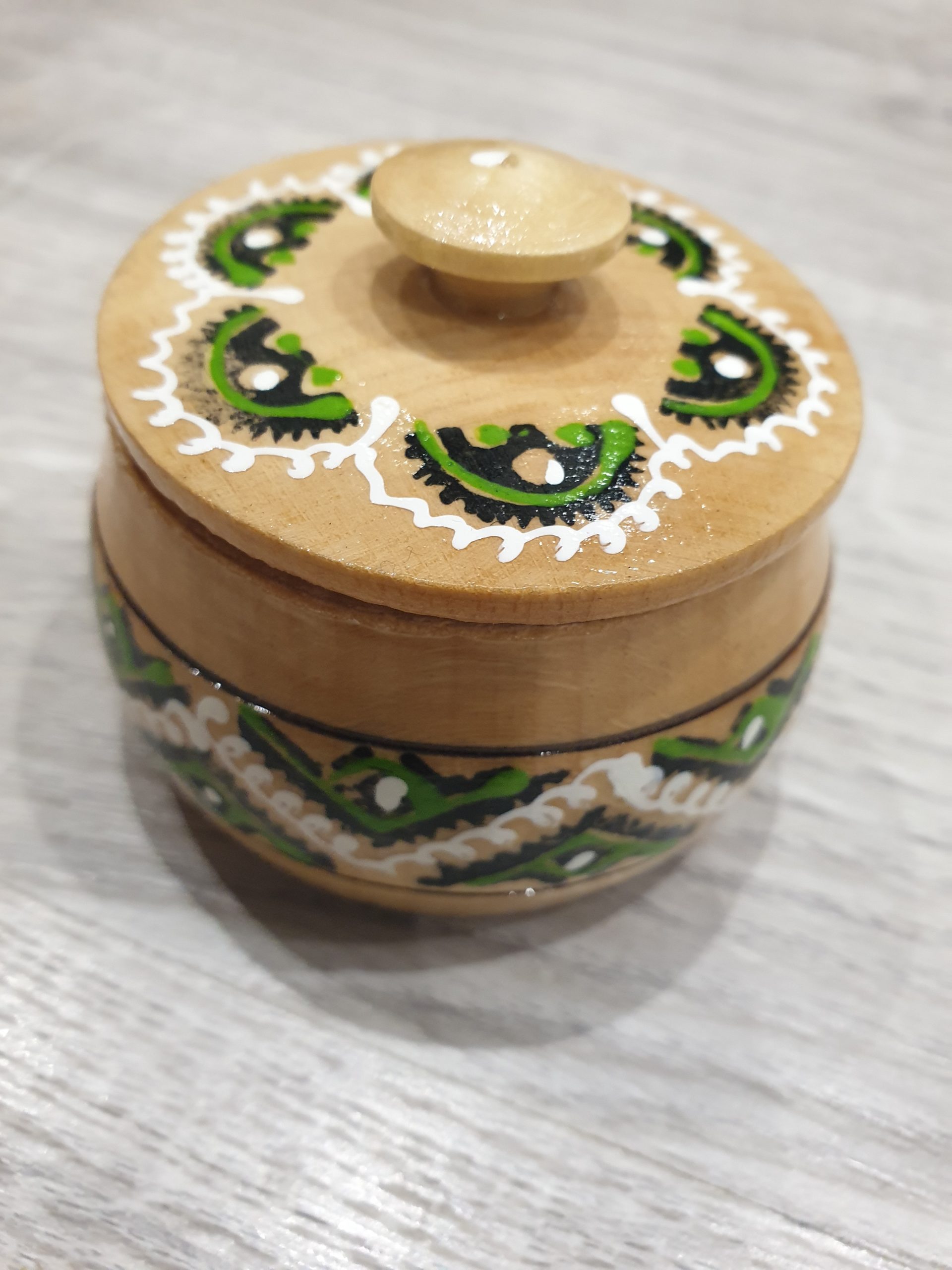 A decorative wooden pot from Ukraine